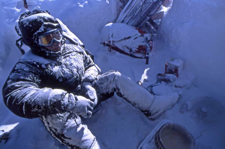 理查兹在下山的过程中遇到了雪崩,最终幸免于难的他甚至还为自己拍摄了一张劫后重生的照片聊以自慰。