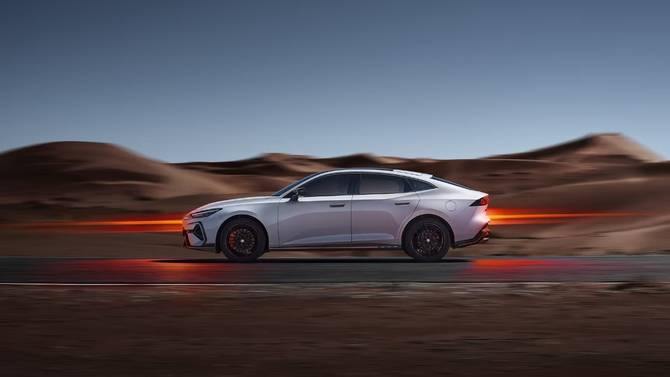 用户对汽车的产品需求正由“出行工具”转向“自我表达载体”,这意味着好的产品外观不仅要符合他们的审美,更要与他们的人生态度共鸣。对此,第三代UNI-V采用专为年轻灵魂定制的“未来先锋运动美学”设计语言,1:3.3的极致头身比,使整车侧面看上去更加修长舒展;3倍轮轴比设计,让车轮与轴距在视觉上达成了一种精妙平衡;而0.78倍的黄金高宽比配合2.18倍的轮高比,让车身呈现出高性能轿跑该有的低趴运动姿态,宽体车身也进一步提升了乘坐舒适性。