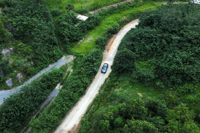 山谷恰恰地形崎岖但风景秀丽,用户皆跃跃欲试,驾驶第三代UNI-V行驶在道路上,速度与诗意并存。