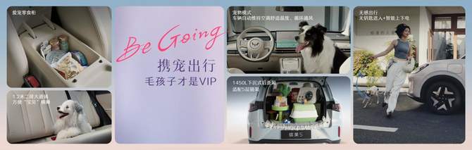 用户携宠出行时,缤果S标配的无感进入功能让用户在抱着宠物的情况下也能够轻松上下车;同级领先的宠物模式实现车辆自动维持空调舒适温度、循环通风,用户离车时宠物在车里依旧安全惬意。车内空间宽适,二排1.2米大通铺让爱宠肆意横躺;多处储物空间,方便宠物用品及零食分类收纳、随用随取;1450L超大后备厢更可轻松容纳五层猫爬架,多宠家庭出行亦从容有序。