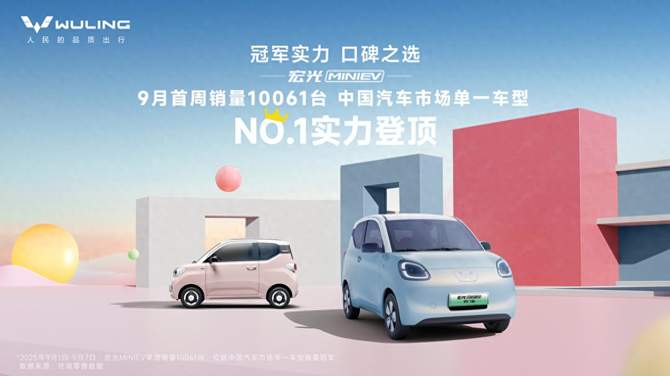 【2025年9月10日】金秋九月,“人民的代步车”宏光MINIEV再传销量捷报!在9月第一周(9月1日-9月7日),宏光MINIEV热销10061台,登顶中国汽车市场单一车型销量榜首,再次彰显其作为新能源代步车领导者的强大实力。这款收获超过170万用户信赖的新能源代步车,正成为开学季代步首选。