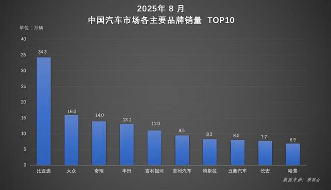 在太平洋汽车发布的8月智能驾驶辅助车型品牌销量榜中,比亚迪以26.37万辆一骑绝尘,其销量相当于第2至第10名品牌之和。