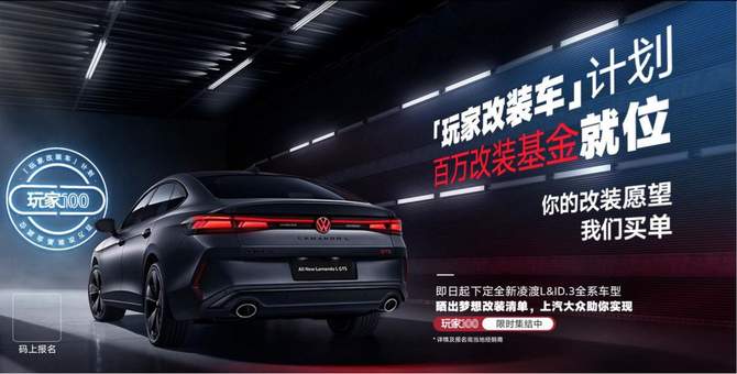 值得一提的是,为助力用户释放改装创意,试驾会上还公布了上汽大众玩家100「玩家改装车」计划的讯息,为下定全新凌渡L的车主们设立了专属改装基金,助力车主的改装梦想。
