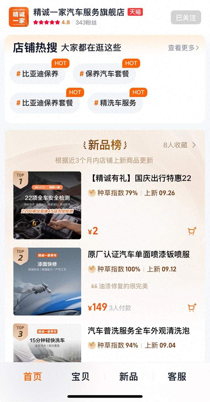 近日,比亚迪推出的“精诚一家养车”入驻天猫,设官方旗舰店主营保养、漆面快修、轻洗精洗等车后服务商品,极具质价比的服务已吸引不少车主下单,全品牌车主可在淘宝或天猫搜索“精诚一家汽车服务旗舰店”下单体验。