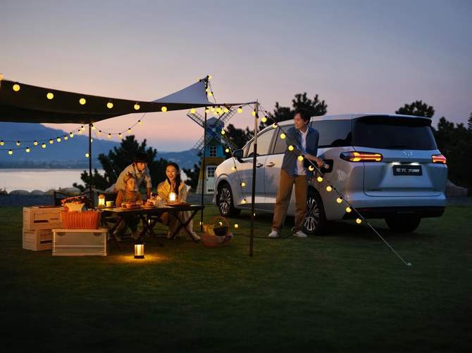 此款型同样配备了超纤皮包覆多功能方向盘、电子式怀挡、电池加热及智能保温、手机远程车控等多项品质配置,并支持220V外放电功能,可随时随地化身“移动电站”,露营、停电应急全搞定,满足亲子户外出游等需求。
