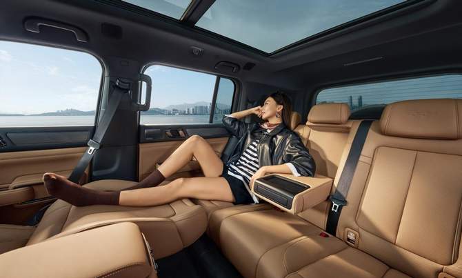豹8大五座版则以“更懂生活的稀缺旗舰”为定位,聚焦空间拓展与豪华配置。新车后排腿部空间及后备箱储物空间进一步增加,配合新增的副驾及后排多向大腿托,以及双开门高压冰箱,尽显奢阔空间和舒享配置。外观和内饰上新增湖光绿外观色与雪隐灰内饰色,并配备新样式轮毂与智驾小蓝灯等细节设计。豹8凭借对奢华体验的深度打磨,以旗舰姿态诠释奢享新境。