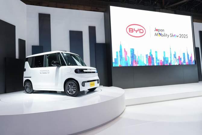 2025年10月29日,比亚迪亮相2025日本移动出行展(简称“东京车展”),全球首发为日本市场量身定制的K-EV BYD RACCO,并同步推出“纯电+混动”双线策略,正式引入其在日本市场的首款插电式混动车型海狮06DM-i。