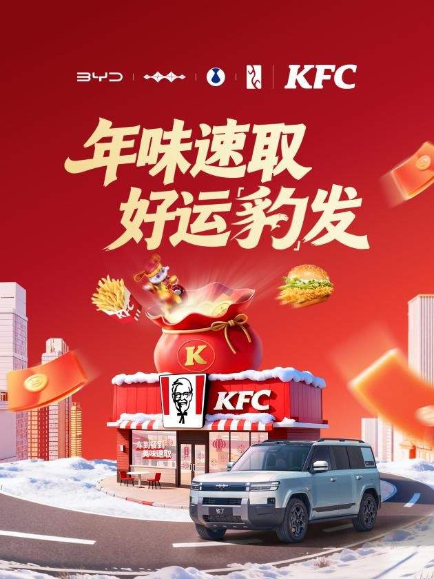此次马年新春联动,不仅是比亚迪集团旗下各个品牌构建“出行+生活”生态的重要一步,更是两大品牌共创美好车生活的全新起点。 依托比亚迪在智能化、新能源领域的深厚积淀,结合肯德基在点餐场景与用餐体验上的优势,双方的合作远不止于此。未来将逐步推进更深层次战略合作,解锁更多全新可能。