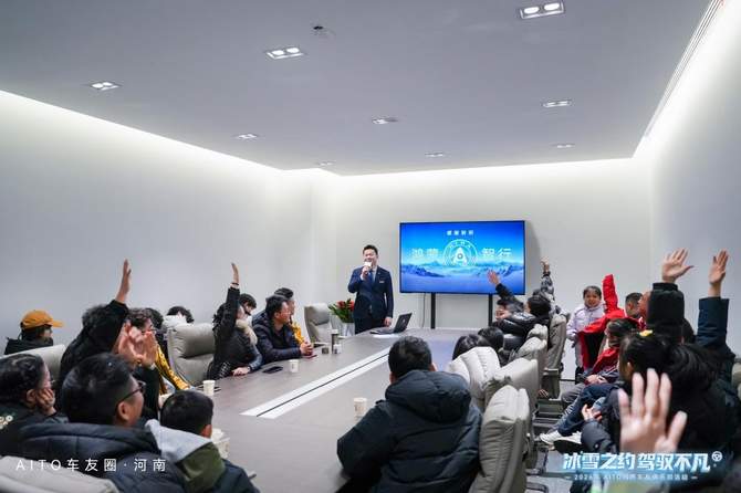 活动当日上午8时30分,车友们陆续抵达AITO授权用户中心·郑州中州大道店完成签到。现场秩序井然,工作人员引导迅速。随后举行的智驾讲堂环节,讲师围绕冬季行车安全展开讲解,重点分享雪地缓刹、控速等实用技巧,并就电池保养、防冻玻璃水选用等冬季用车知识进行系统普及。内容贴近实际,车友们认真聆听、积极互动,为后续雪地驾驶打下安全基础。