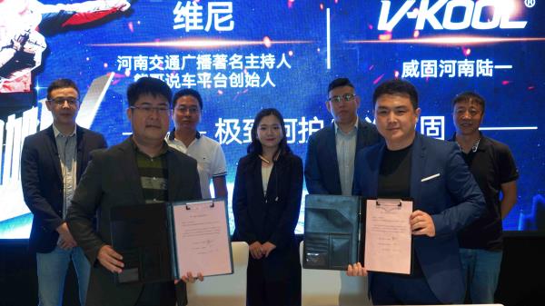美国伊士曼总部威固中国负责人张远洋、威固中国市场负责人冯小顺、河南交通广播主持人熊哥说车平台创始人维尼、威固河南陆一总经理蔡成治,以及来自河南、江苏、贵州的100多名威固专营服务店总监、和10多家河南主流媒体嘉宾共同见证了陆一汽车与河南交通广播主持人、熊哥说车平台创始人维尼签约威固品牌代言新闻发布活动。