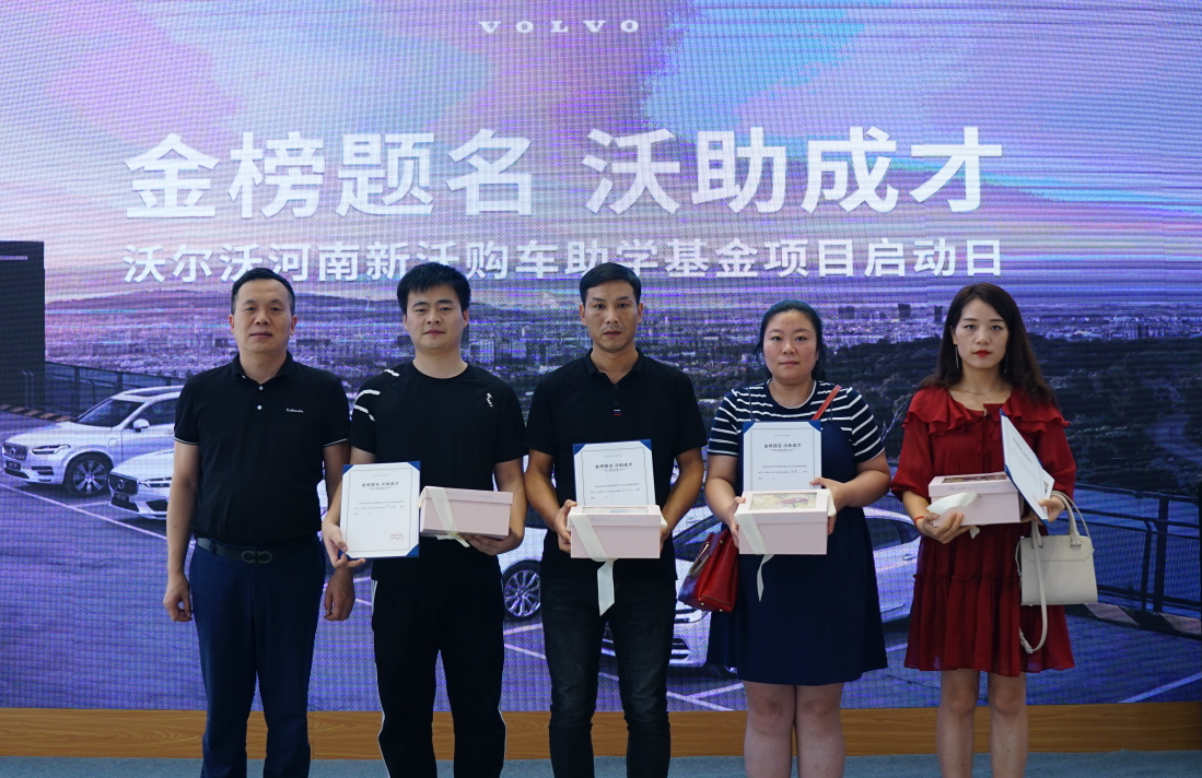 2020年7月25日金榜题名 沃助成才-沃尔沃购车助学基金项目正式启动,活动现场邀请了教育界代表魏功教授,河南合众新沃总经理丁建波,以及合众新沃的忠实车主,合众汽车集团黑卡会员,合众管培生、合众定向班的学生代表共同见证