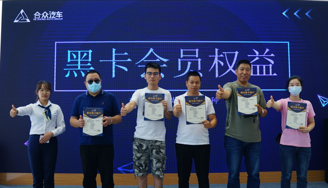 黑卡会员可以享受一对一管家式服务,VIP绿色通道,优先接待和机场免费停车等等各项福利,今天我们也邀请了5位河南合众的车主,成为合众集团尊贵的黑卡会员