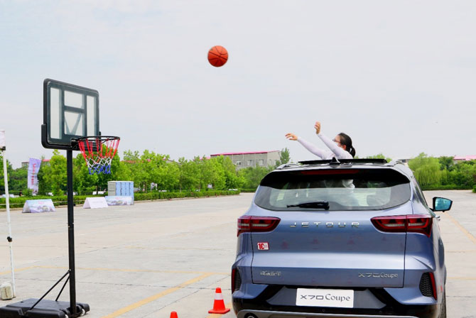 此次捷途X70Coupe潮劲体验营郑州站活动中,不仅有充满竞技性和挑战性的试驾项目,还有趣味十足的天窗定点投篮项目。