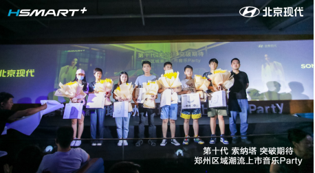 北京现代中区事业部部长周斌先生、北京现代河南办事处主任董洪生先生、北京现代区域经理马志飞先生与郑州区域各经销商亲临活动现场,与在场的40余家媒体们及现场200余名粉丝们,一起为北京现代第十代索纳塔郑州区域上市助力。