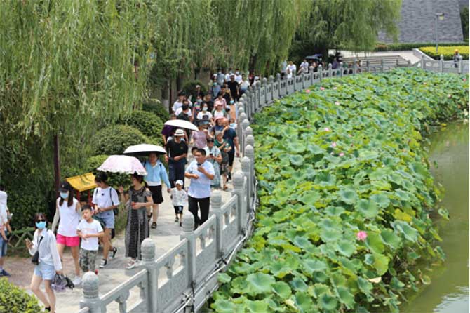 车友们在工作人员的安排下有序进入景区内,亭台楼阁,荷香飘荡,夏日里的湖水微风给久居城市的我们带来了一丝清凉,惬意的行走在如诗的画卷中。