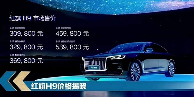 发布会的最后,红旗H9的售价正式解锁,带来了价格从309,800元到539,800元共五款车型。