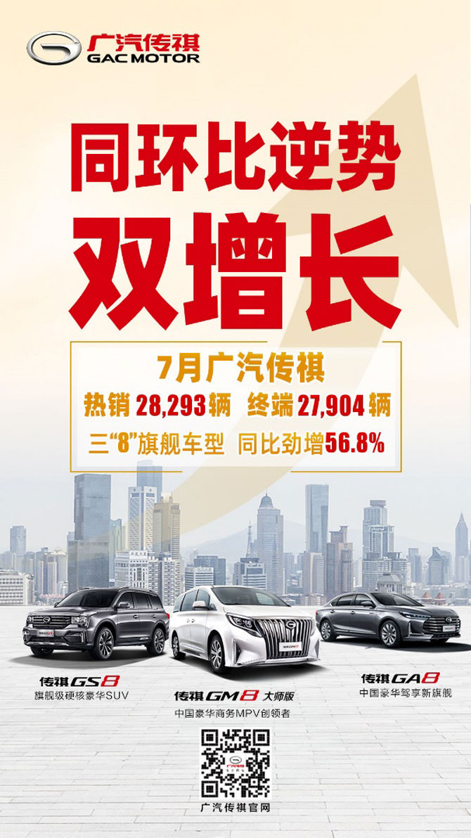 (7月 广汽传祺三“8”旗舰车型销量劲增)