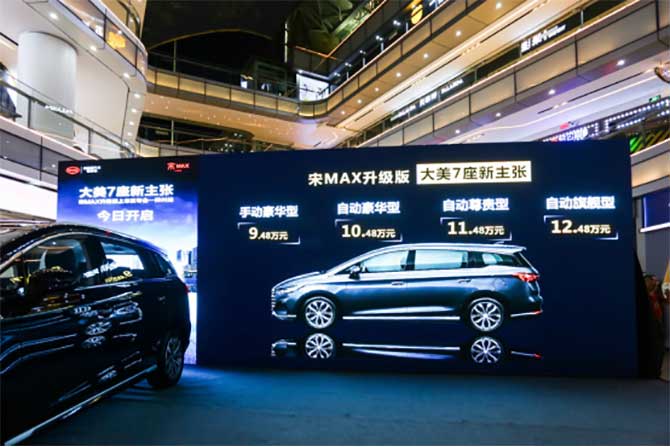 2020年9月19日,宋MAX升级版上市发布会在郑州市汇艺银河里顺利举行。据悉,宋MAX升级版带来的“大美7座新主张”倡导“比大更大、比美更美”。在颜值、空间、安全性能、科技和内饰这五个维度进行了升级,更迎合当下用户的用车新需求。价格上也颇具优势,意味着MPV汽车市场新破局者到来,市场表现值得期待。