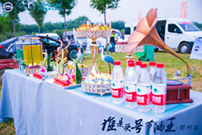我们在现场也为客户精心准备了冷餐、饮料、水等食物,客户在品尝美食的同时,我们的工作人员也会为车辆贴上这次活动的车贴,这样更加能够统计车辆。