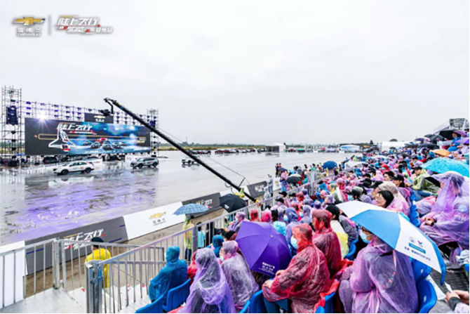 更刺激的是它们带来的定点漂移表演,在刷圈竞速中,轮胎嘶吼水花激荡,咆哮声响彻现场,诠释着雪佛兰品牌的高性能基因。