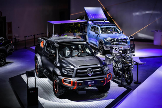 9月末,北京国际车展E3馆,长城皮卡展区重“装”上阵。其中,商用电装炮正式上市,售价区间为25.18万-26.68万元;乘用电装炮开启预售,价格区间为27.98万-29.28万元。作为国内量产最长续航里程电动皮卡,电装炮续航里程可达405km,并支持固定场景下的L4级别自动辅助驾驶,开创国产乘用皮卡的智能化新高度。三款改装车黑弹、野装炮、旅装炮震撼亮相,成为全场最吸睛的皮卡车型,再次刷新了国产皮卡在改装、设计等方面的巅峰水平。