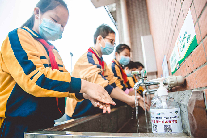在硬件援助层面,项目此前捐助的医用口罩、消毒液等消耗性防疫物资均已落实到位。为受助学校配置的校园保健室药品柜、紫外线消毒灯、诊查床、体温计等防疫卫生设施设备也投入使用,升级基层学校公共卫生基础条件,为学生的校园生活保驾护航,进一步提高学校公共卫生防护水平。