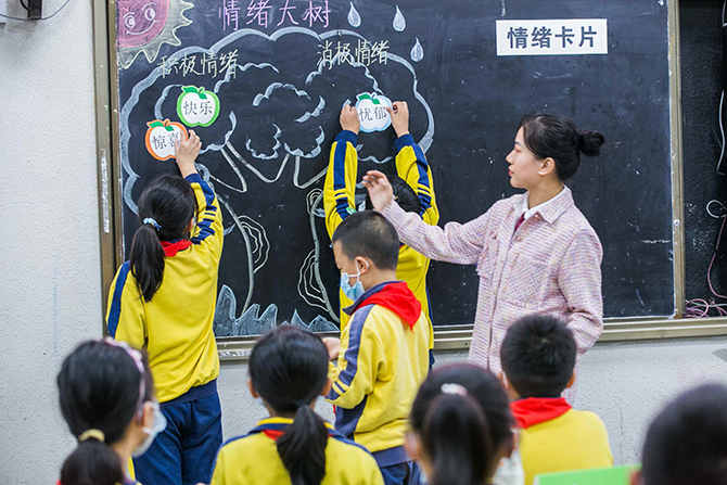 此次的湖北行正是为了实地了解健康护航项目的具体落地实施情况。当天,调研组在咸宁市实验小学现场观摩了项目心理辅导课程。在课堂上,汇聚着中国心理学会、中国科学院心理研究所等国内权威儿童心理专家的专业知识和危机干预经验的《我的战“疫”心灵成长记》系列丛书已经下发到同学和老师的手中。老师结合丛书中的专业知识,与学生们进行了丰富的心理健康互动教学,帮助学生们形成积极正向的心理认知。同时,中国心理学会秘书长刘正奎先生也为心理教学提供现场指导,特别讲授了在疫情防控常态化期间,中小学心理健康问题应对办法,有效地将疫情危机转化为学生心灵成长的有利契机。