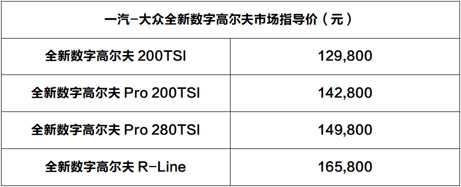 全新数字高尔夫激情上市,售价区间12.98-16.58万元