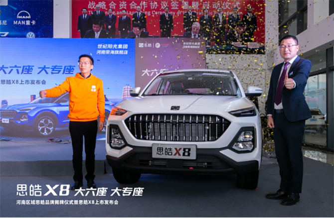 11月15日世纪阳光集团携手思皓品牌暨思皓首款中型SUV思皓X8在河南区域新老客户及区域媒体的见证下荣耀发布。