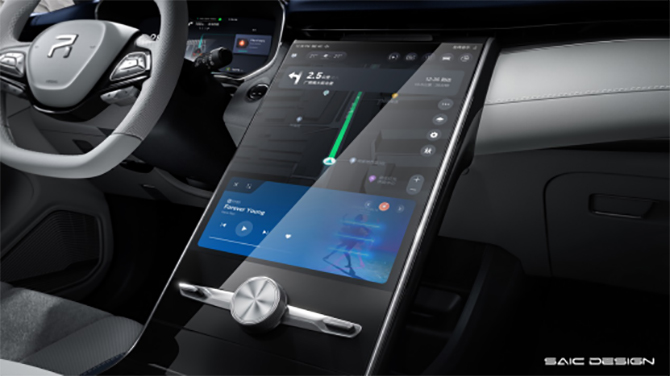 MARVEL R内饰IP台设计,更强调简约集成概念。出风口融入整体设计中,进行弱化处理,以此强调和突显集成式智能中控,使整个内饰设计主次分明,简洁整体。