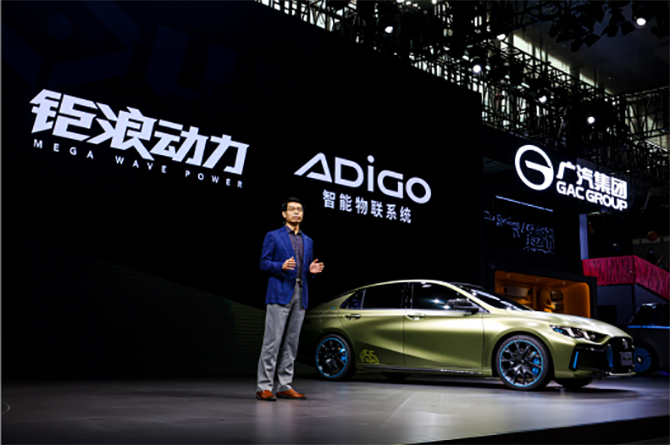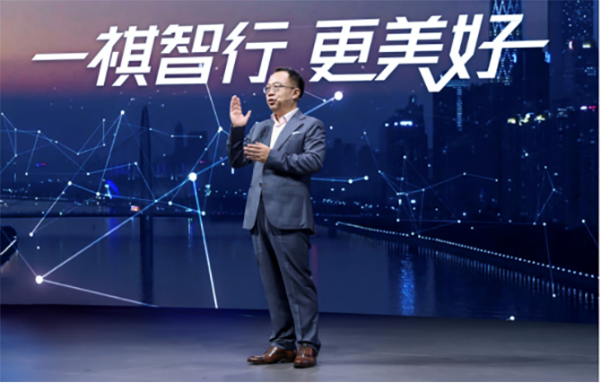 (广汽集团自主品牌经营管理委员会主任、广汽乘用车总经理张跃赛发布全新品牌口号:一祺智行更美好)