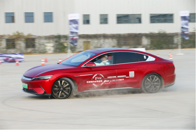 在专业教练的指导下,汉唐为到场的各位嘉宾呈现了直角弯、颠簸路段、蛇形绕桩竞速表演赛,进一步展现了汉唐车型在转向、悬挂系统、轮胎等整个底盘系统的综合调教能力。到场的媒体与客户嘉宾则以分组的形式,在外场赛道和内场进行交叉式体验,尽情领略了汉唐的科技魅力,亲身感受了比亚迪带来的速度与激情。