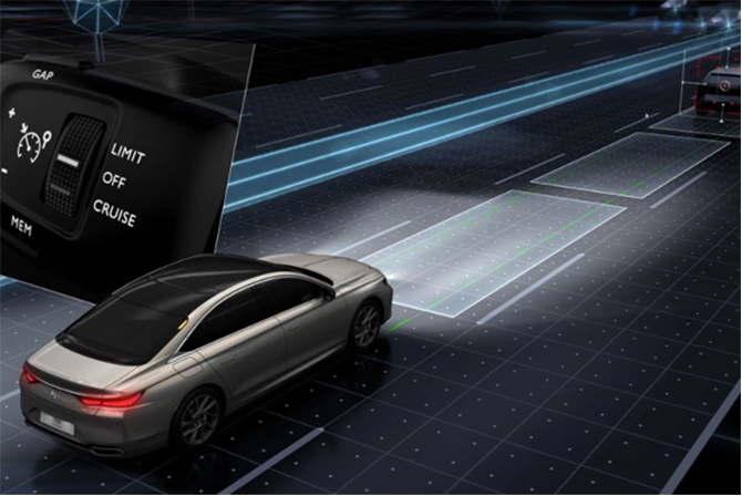 DS智能领航系统包括带跟停续走功能(Stop&Go)的自适应巡航系统(ACC)和车道位置辅助功能,能够根据前方车辆情况对自身车速和安全距离进行自动调节。这不仅能让驾驶者轻松面对高速情况,更适用于市区跟车场景。当交通拥堵时,如果车辆停下来不超过三秒,车辆会自动重新启动;若超过三秒,驾驶者只需按下按键或者踩下油门,即可让车辆重新启动。DS智能领航系统可减少驾驶者的不必要操作,为他们带来更轻松的驾驶体验。