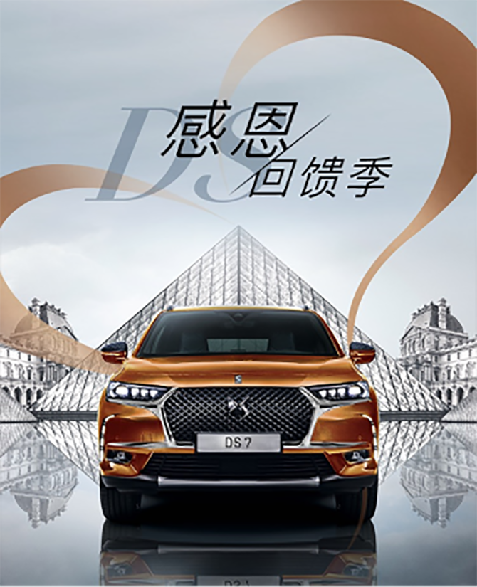 自2012年进入中国市场以来,DS品牌为中国消费者带来了一系列独具法式魅力的产品,并收获了众多中国车主的信赖。2020年8月,DS品牌发布全新在华品牌主张”致美·行远”,旨在打造清晰、一致、独特的品牌形象,与追求设计美感、崇尚个性表达、讲究生活品质的新生代消费者构建情感共鸣。在该品牌主张指引下,DS将坚定发展信心、扎根中国市场,在品牌建设、产品布局、服务模式等方面持续精进,致力于为中国消费者提供兼具法式灵感、美学设计、高端品质和精致体验的产品与服务。