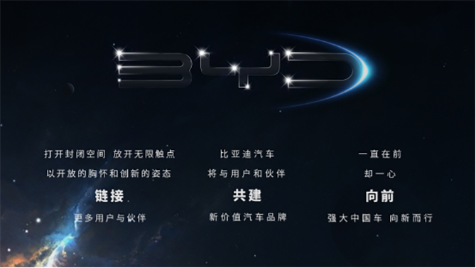 全新LOGO只应用于国内乘用车市场,集团其他业务维持原LOGO不变。更加开放的比亚迪汽车,将用新科技链接世界,与用户及伙伴共建新价值汽车品牌,为了每一次愉悦出行新体验,加速向前。