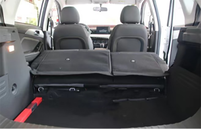再来看后排储物空间,在后排座椅没有放倒的时候,其后备箱有740mm的深度,可实现720升的容物空间。如果把支持4/6分割的后排座椅放倒,整个储物深度可以达到惊人的1650mm,对应720升的储物空间,翻了一倍还有余。结合后备箱开口1070mm和910mm的宽度和高度,就算你在买年货时看中了一棵大型盆栽发财树,也可轻松放进后备箱。