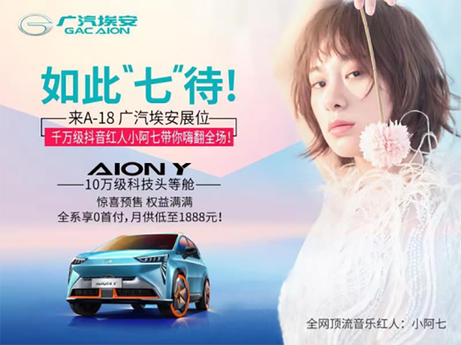 其中人气爆炸的,是拥有3000万粉丝的网红小阿七,将于4月10日空降大河车展广汽埃安展位,和河南粉丝现场见面,并演唱新歌《酒家》,现场飙歌。