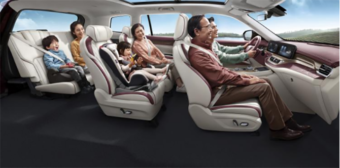 头等座舱式6座独立布局。宽敞的T型通道,方便进出三排。6个座椅,全家人出行,座座皆舒适的舒享体验。