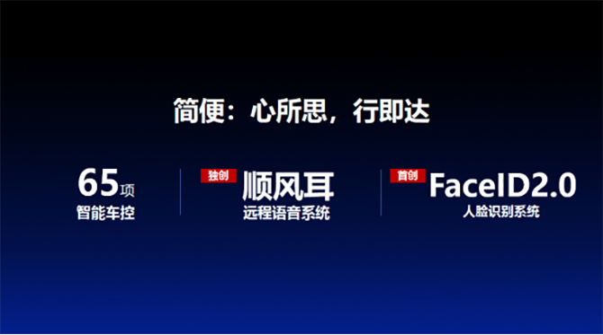 人脸识别;行业首创FaceID2.0人脸识别系统,车外刷脸开门,车内刷脸启动车辆。