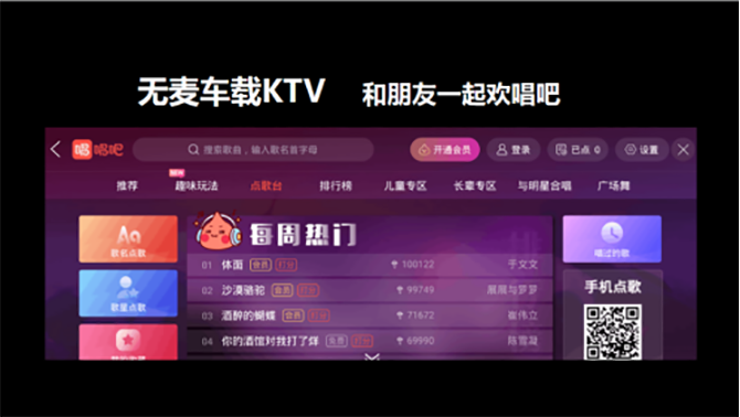 有智立体超感座舱。无麦K歌;行业首创的无麦车载KTV,重新定义智能座舱娱乐新生态。