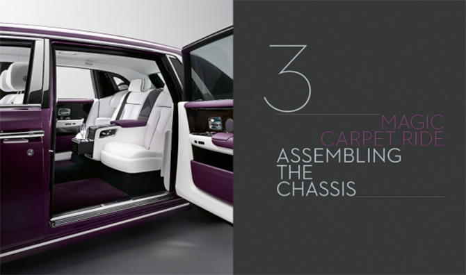 该书以近300页的丰富插图,细致描绘了劳斯莱斯汽车在设计、车辆工程和精心手工打造过程中的每个细节。其章节包括设计及定制、车漆及饰面、底盘工艺、木工艺、皮革及刺绣工艺,甚至还有一整个章节专门介绍劳斯莱斯“欢庆女神”。