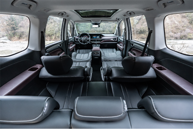 并且在乘坐的座椅上也进行了全面升级。全车采用人体工学全贴合舒适座椅,乘坐时触感更柔软。二排座椅新增外侧扶手并配备4级调节,乘客能随心调整乘坐姿势,获得舒展自在的最佳体验。同时,二排通道宽达170mm,不管是小孩或长辈都能轻松进出二、三排。第三排座椅椅背新增多级调节,可前后调节达23.2°,配合加厚的座垫设计,最后一排再也不会有坐“小板凳”的局促感。
