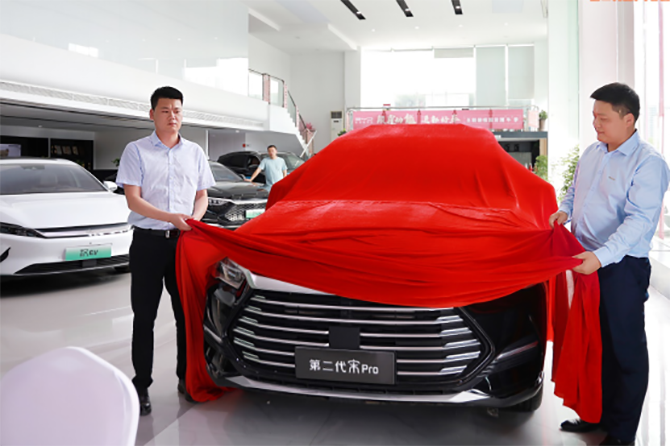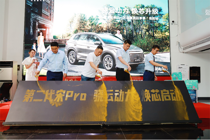在众人的见证下,由比亚迪汽车中部战区洛阳大区区域经理张辉、比亚迪汽车洛阳维利特集团总经理刘治刚共同揭幕第二代宋Pro,更有气势的龙颜Dragon Face 3.0、更为精致的细节无不展现出第二代宋Pro的进升之美。