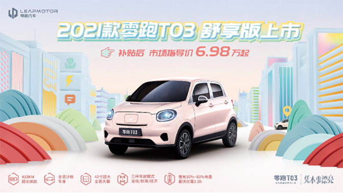 【6月18日】,零跑T03舒享版正式上市,补贴后售价6.98万元起。零跑T03舒享版的到来,丰富了T03家族的产品矩阵,为更多的消费者带来有颜值有实力的出行生活。