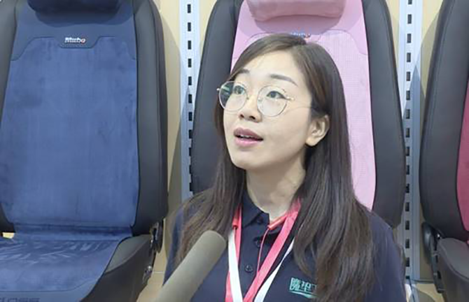 河南牧宝车居股份有限公司总经理马文芳说:“今天带来了很多精品,像我们中国风的福宝,吉祥三宝,坐着舒服,看着也漂亮,包括我们这款冲孔坐垫,它是延续了我们原有的脚垫的风格,一个钻石人生的花型,三千六百孔的冲孔,包括苎麻系列的坐垫,是沿用了苎麻的特性,但是超越了麻,抗菌净味,还可以防紫外线。”