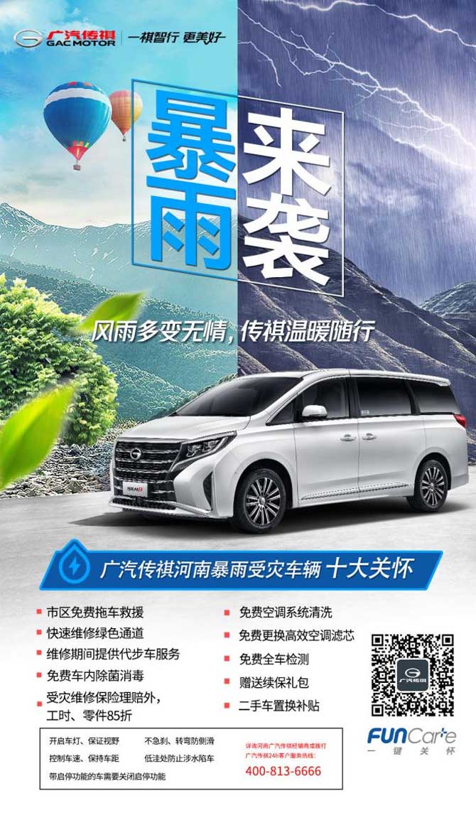 针对河南灾情,广汽传祺已为受灾车辆推出十大关怀服务措施,给予广大车主灾后便捷的用车服务。代步车交付工作也将持续进行,为当地政府及救援机构提供协助,助力河南救援复建工作,重建美好家园。