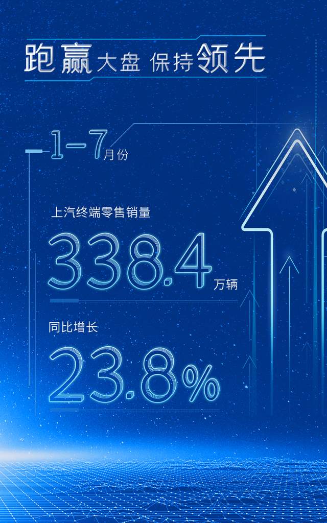 【凹凸汽车网讯】今年1-7月份,上汽终端零售销量达到338.4万辆,同比增长23.8%,超过行业平均增速,继续保持领先地位。