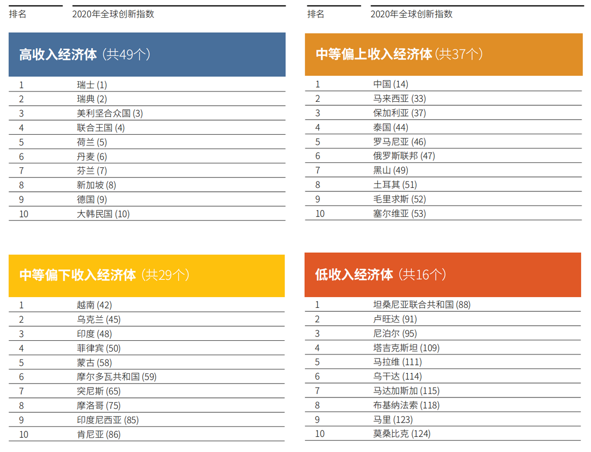 根据2020年“全球创新指数”报告,中国创新能力排名全球第14位