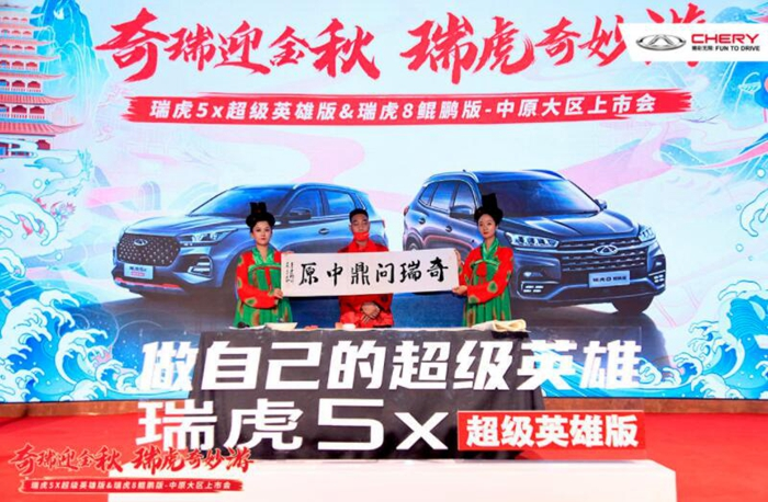 【凹凸汽车网 讯】“奇瑞迎金秋,瑞虎奇妙游”!9月12日,瑞虎5x超级英雄版&瑞虎8鲲鹏版在郑州建业电影小镇联袂登场,虎啸八方!奇瑞汽车河南大区领导、郑州经销商店领导、河南主流媒体、车主用户和主播共聚一堂见证了这一荣耀的时刻。