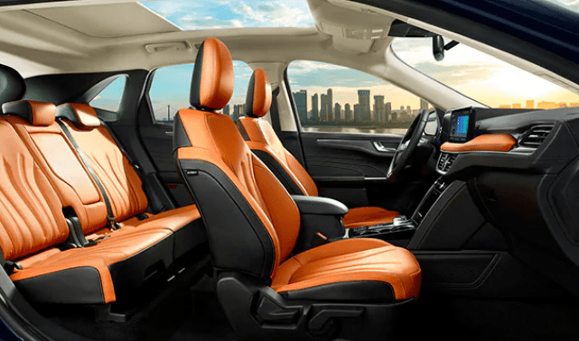 座椅方面,新款福特锐际采用时尚撞色环保皮件,个性十足,颜色也很亮眼,当然在舒适度上,也是很不错的。